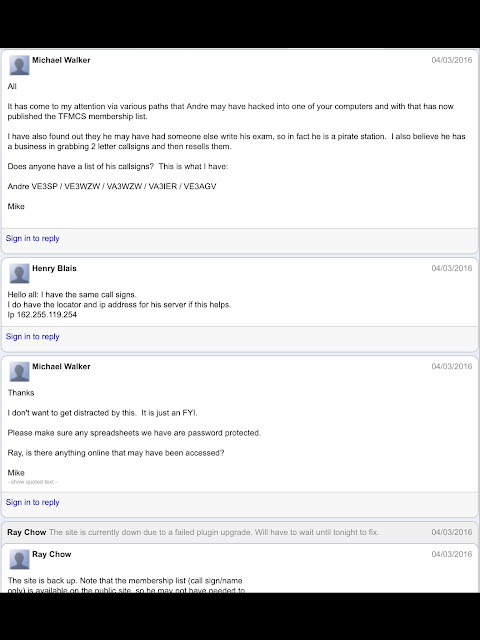 The false accusations in the images was posted by the leadership of an Amateur Radio Club (TFMCS) in Toronto CANADA. This is an example of the TOXIC and slanderous accusations.